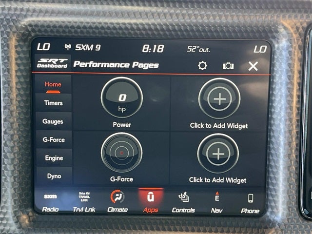 - Wheels: 20" x 9.5" SRT Lowgloss Black Performance