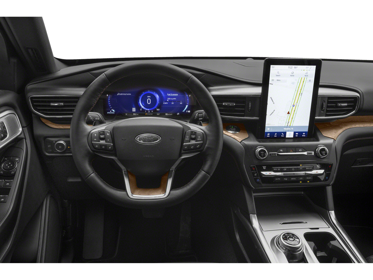 Step inside and be greeted by a wealth of premium features that elevate the driving experience. The luxurious leather-wrapped steering wheel and heated, ventilated front seats provide unparalleled comfort, while the 10.1-inch touchscreen display with SYNC 3 technology and integrated navigation system keep you connected and in control. The Dual-Headrest Rear Seat Entertainment System ensures your passengers can enjoy the ride in style.