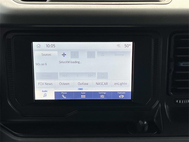 ABS brakes, Compass, Electronic Stability Control, Heated door mirrors, Illuminated entry, Low tire pressure warning, Remote keyless entry, Traction control. 2023 Ford Bronco Race Red 2.7L EcoBoost V6 10-Speed Automatic 4WD